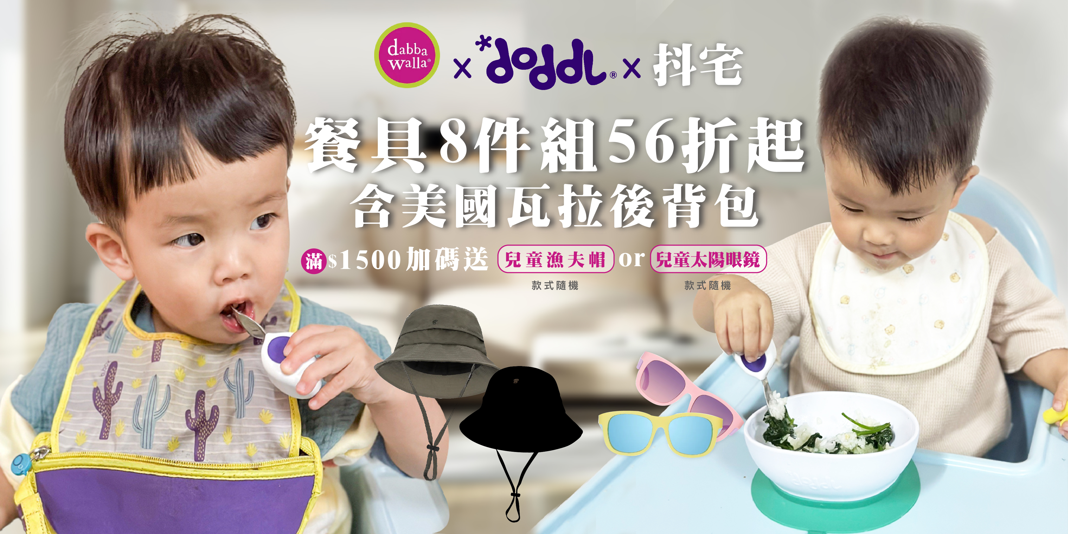 【抖宅專屬優惠】11/01-11/07購買餐具&瓦拉包滿$1500即送兒童防曬帽或兒童太陽眼鏡(隨機出貨;可累積贈送)