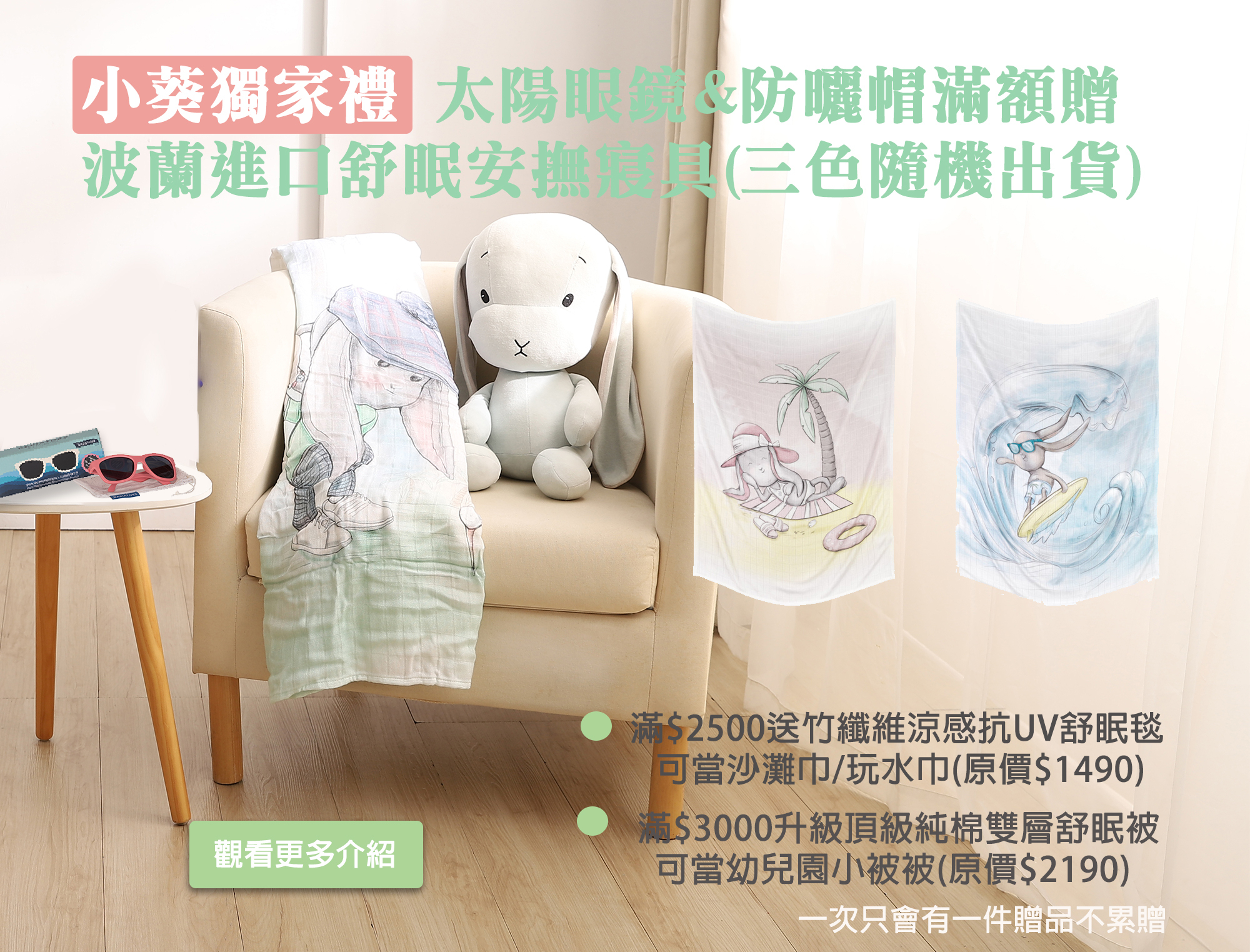 滿$3000(不含運費)送幼兒純棉雙層舒眠毯(原價$2190)