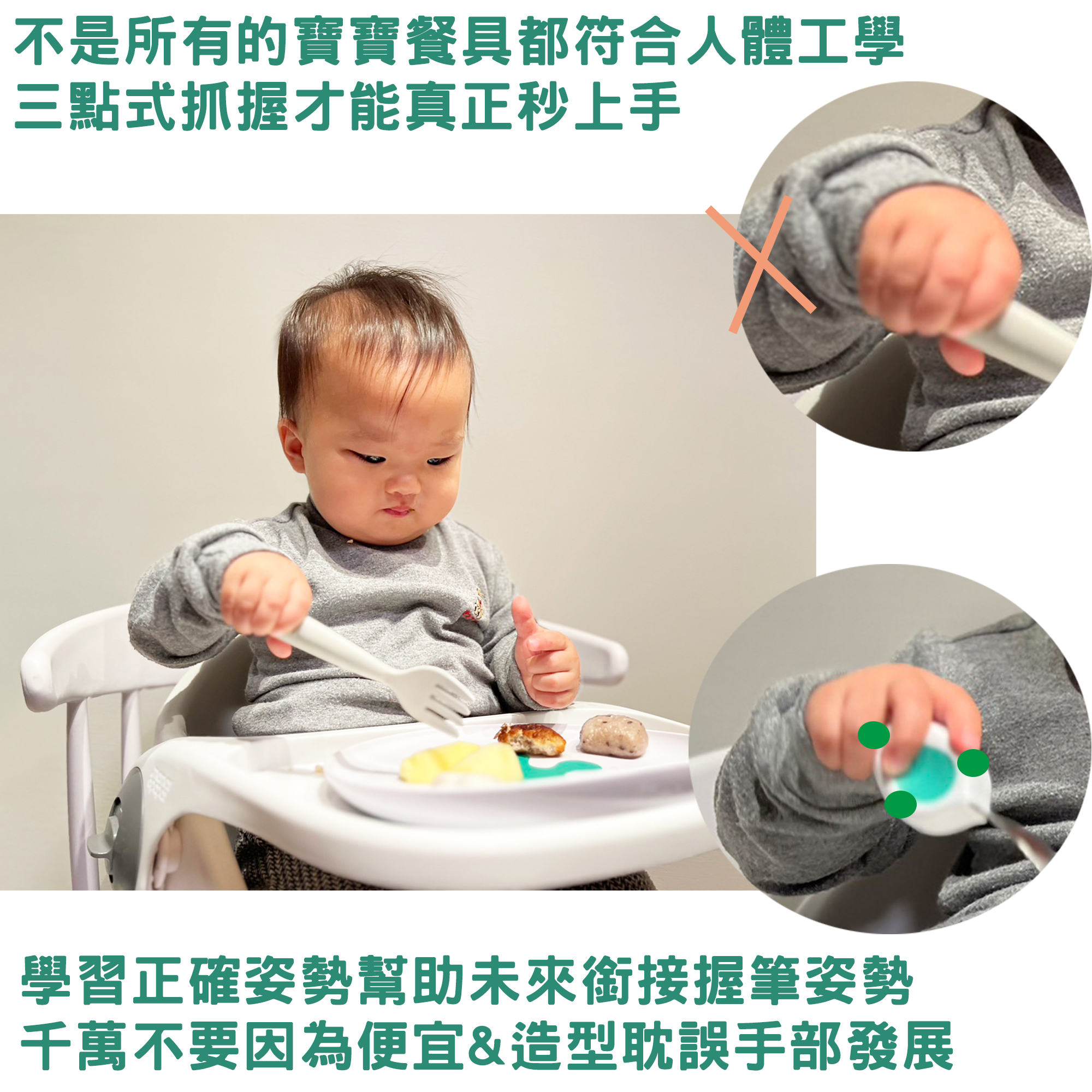 千萬別以爲「孩子小」沒關係✘孩子的餐具「抓握姿勢」很重要❗️正確的握姿⭕️才能有效訓練小肌群💪