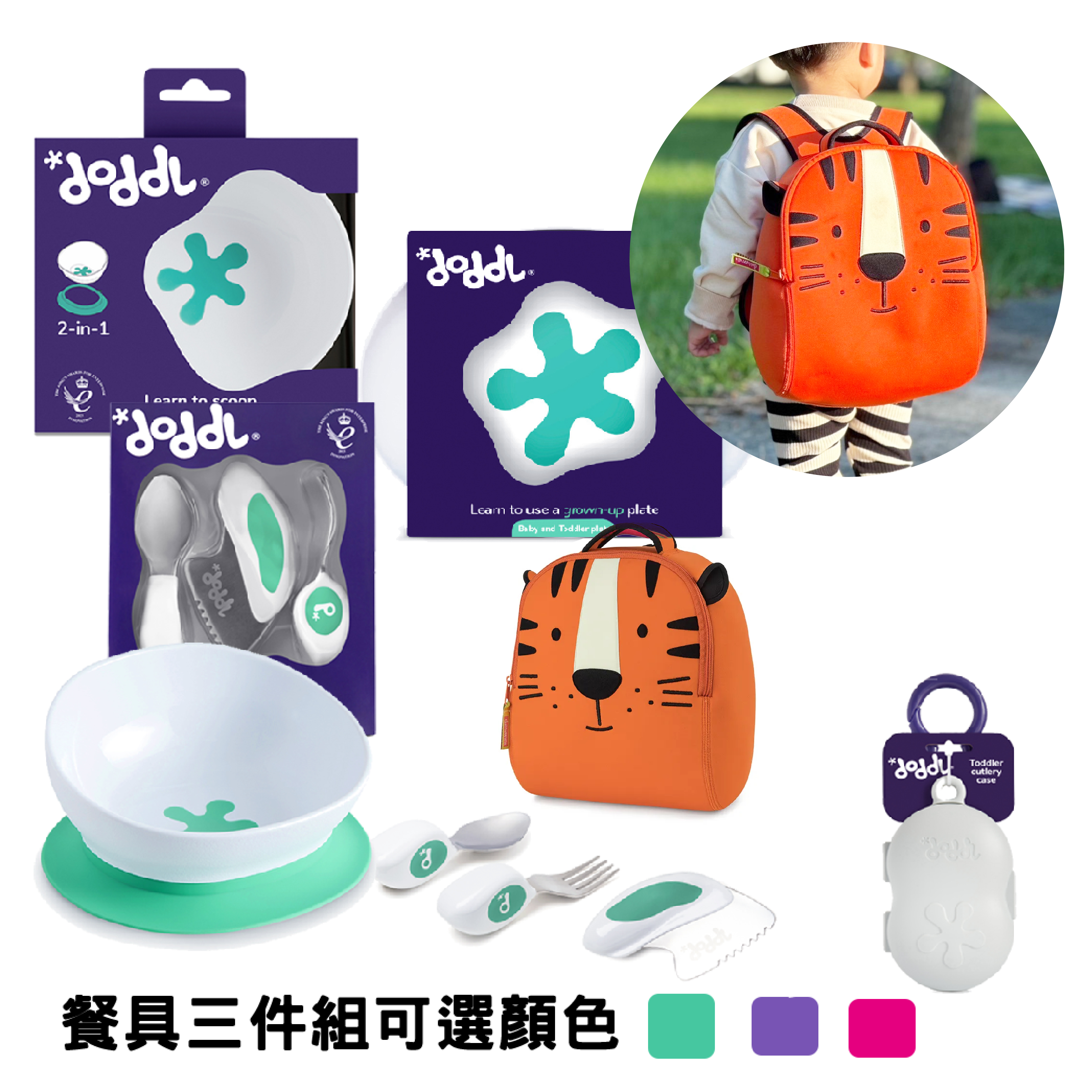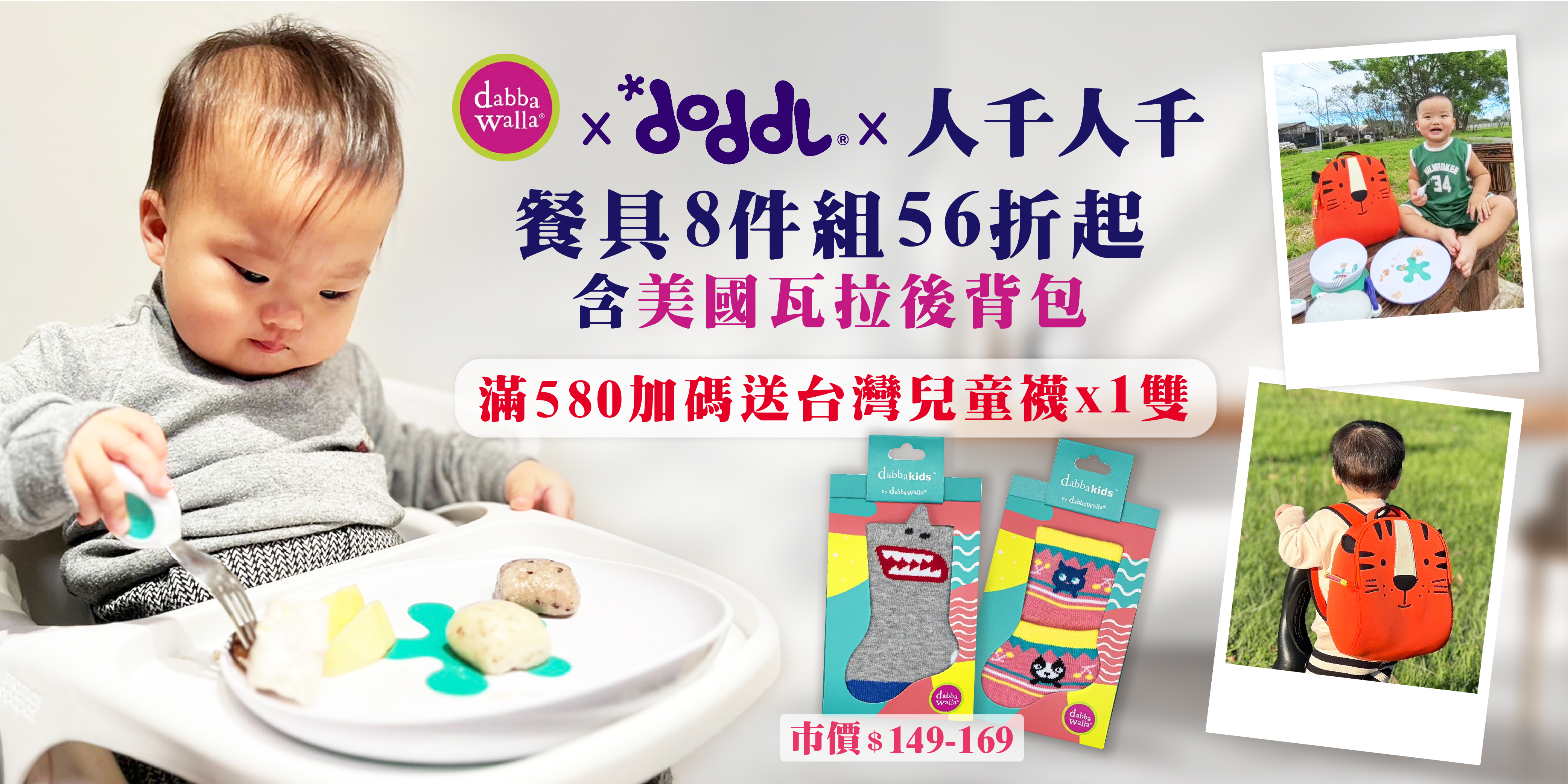 英國doddl餐具&美國瓦拉包滿$580(不含運費)送即送超台灣製兒童襪-款式隨機(原價$149-169)