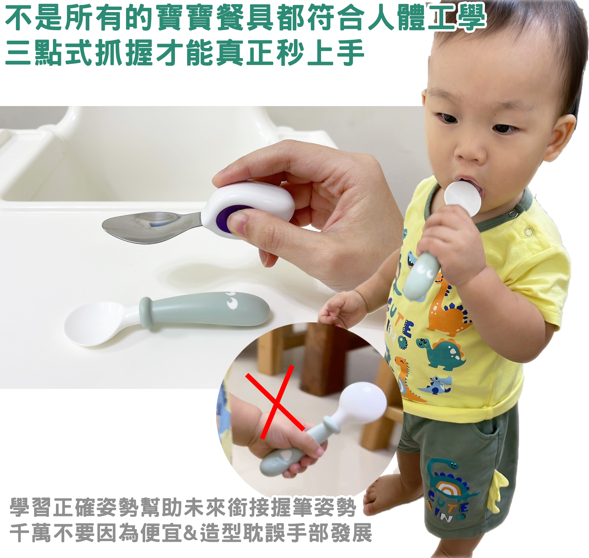 專為寶寶設計的餐具直覺式握把寶寶拿起來非常順手自然