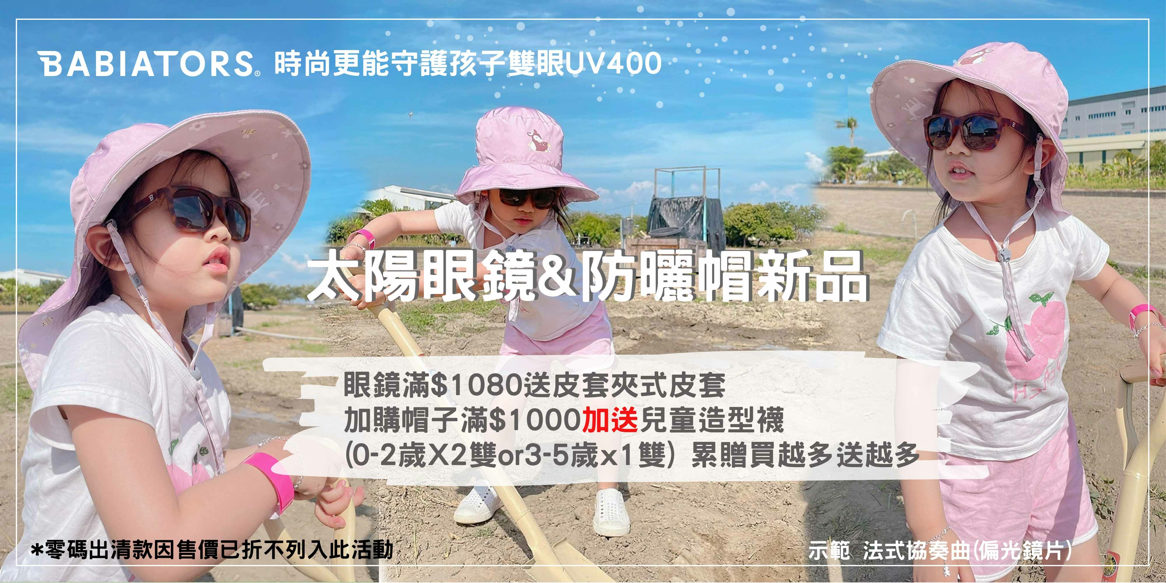 眼鏡&帽子滿$1000(不含運費)送兒童造型襪(原價$298)
