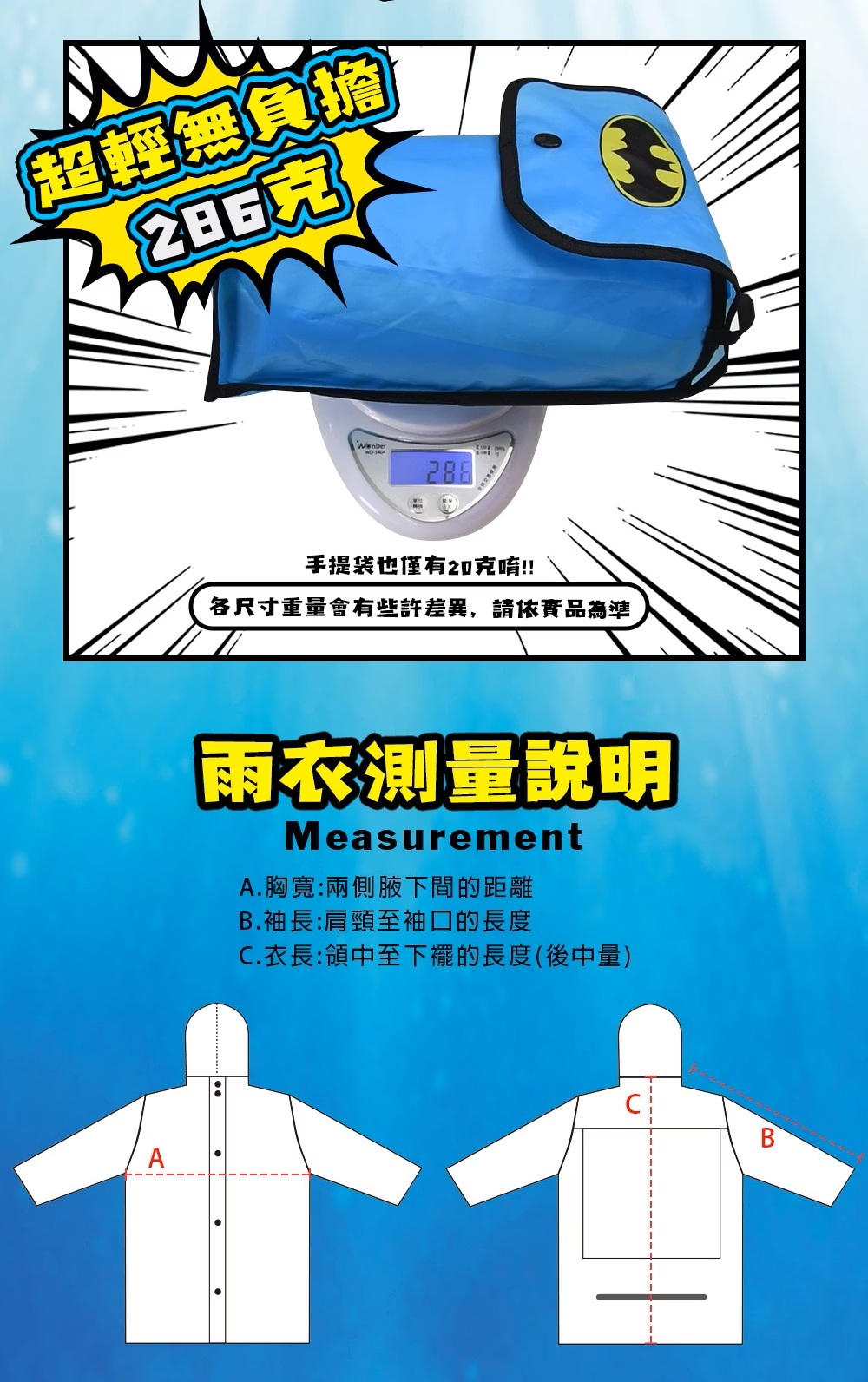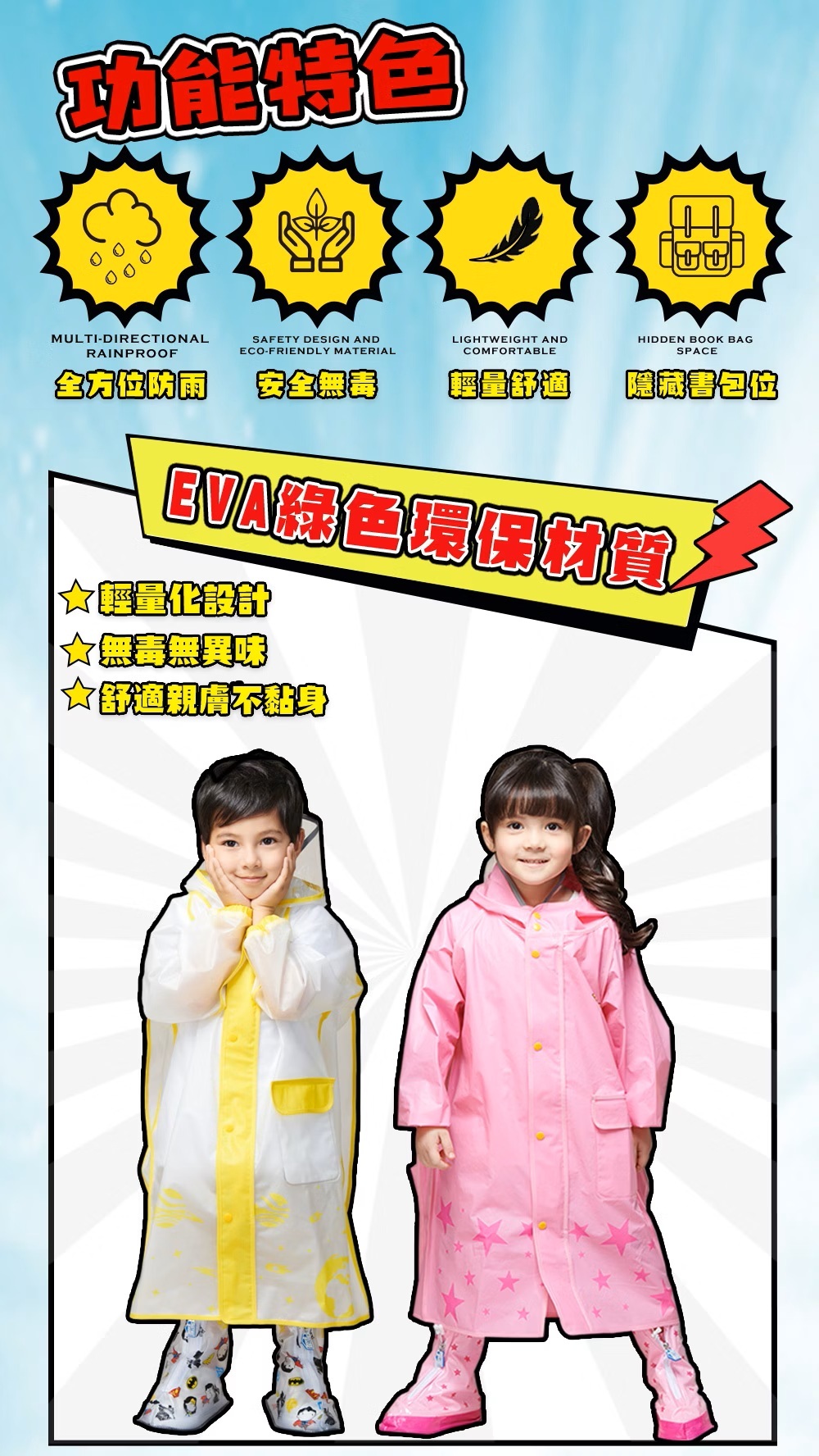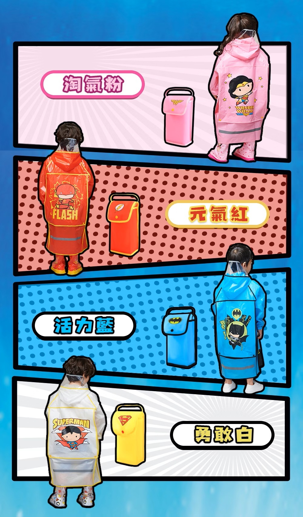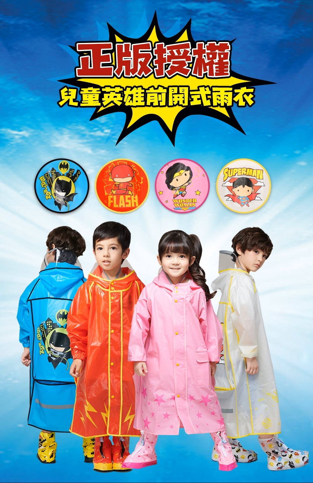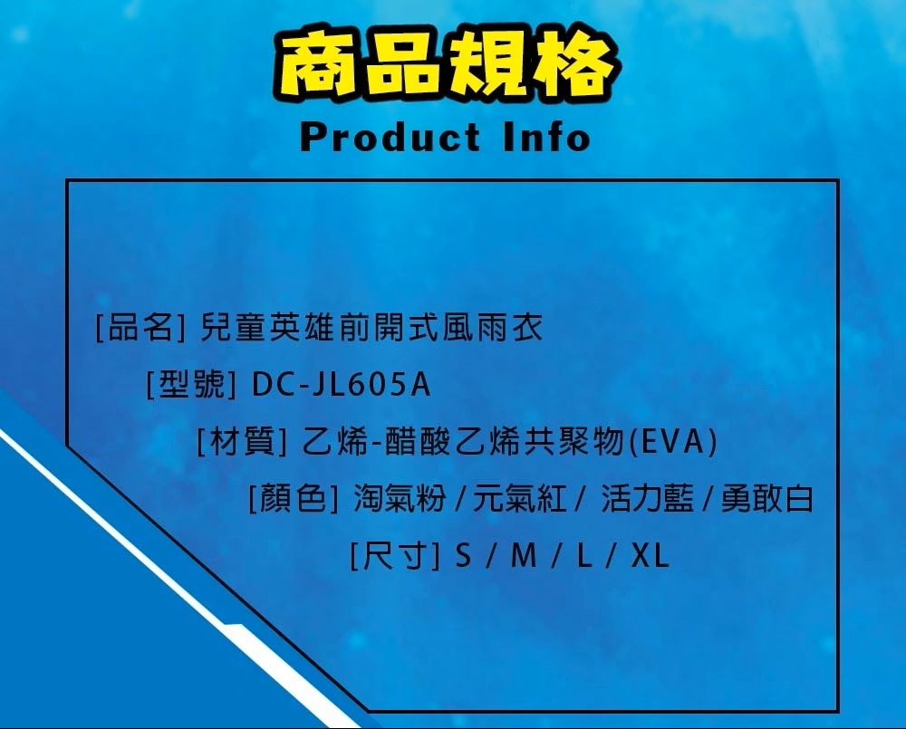 ✔️品名:兒童英雄前開式風雨衣