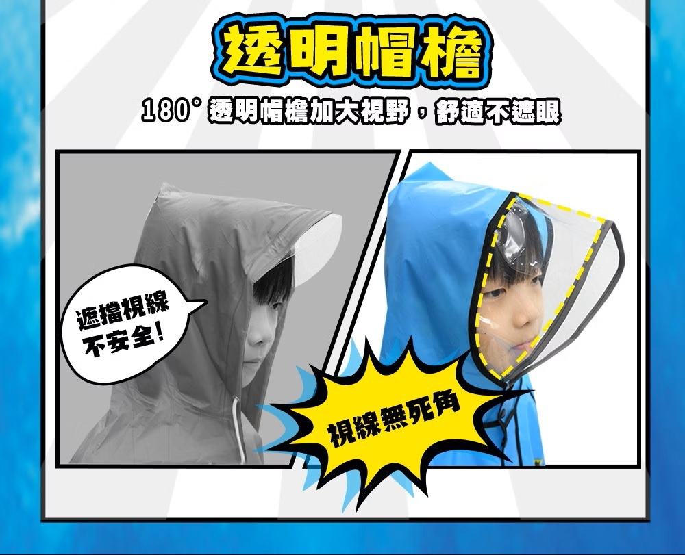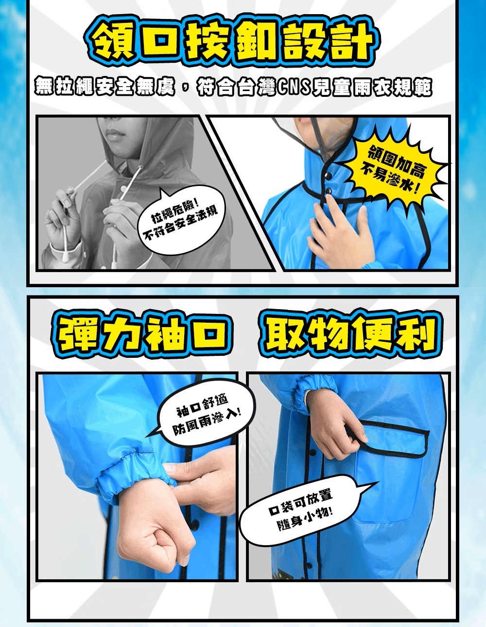 .領口暗釦設計,符合台灣CNS兒童雨衣規範