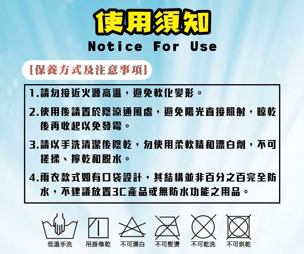 會影響雨衣的透氣性及潑水性唷!