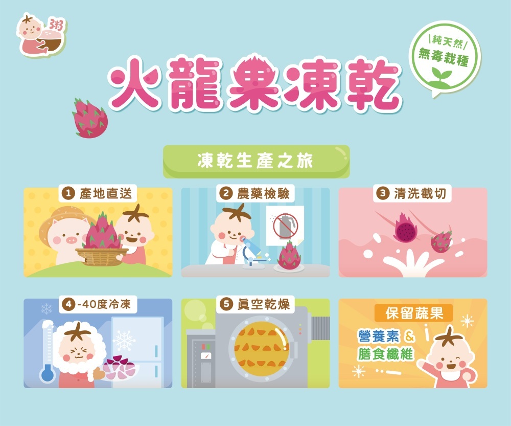10個月以上的寶寶即可享用,小朋友大朋友也會一口接一口吃不停,再非產季也能吃得到,不再因季節受限,一家大小都能隨時隨地享受火龍果風味!