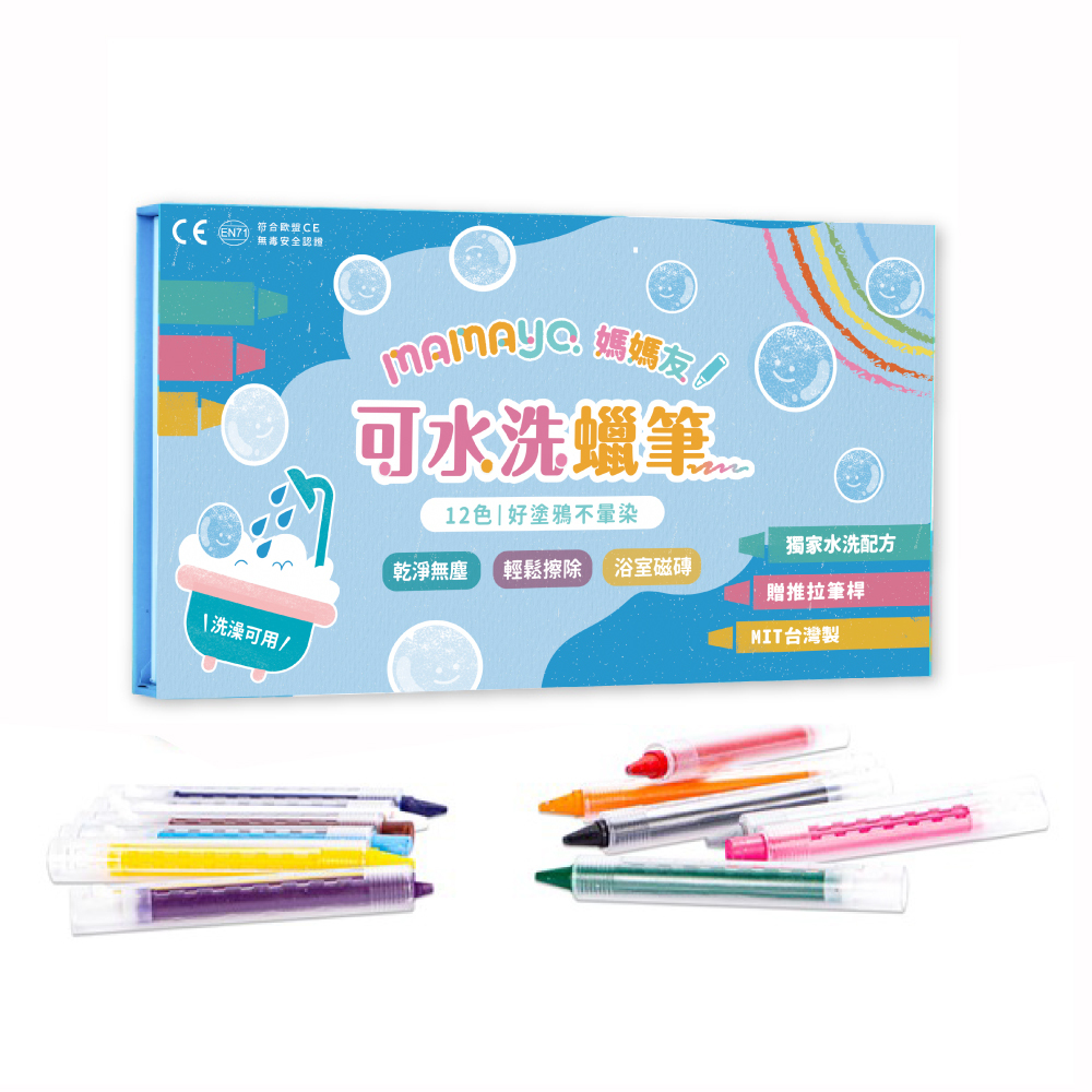 mamayo伸縮水洗蠟筆,又稱作洗澡蠟筆,不沾手不油膩,全程台灣生產製造,色彩飽和度高,可用於光滑的浴室磁磚或是牆壁,使用濕抹布即可擦拭完成,讓孩子盡情地玩耍,是我們的使命,如果擔心孩子把牆壁塗得亂七八糟,是專為幼兒設計的一款無毒蠟筆