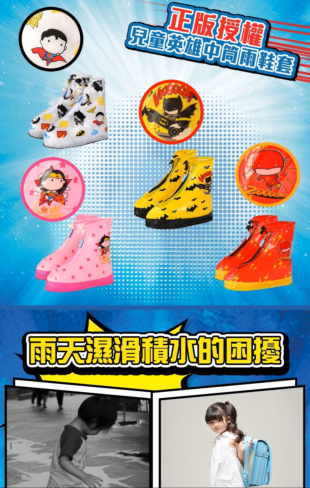 ✔️品名:英雄卡通兒童中筒鞋套